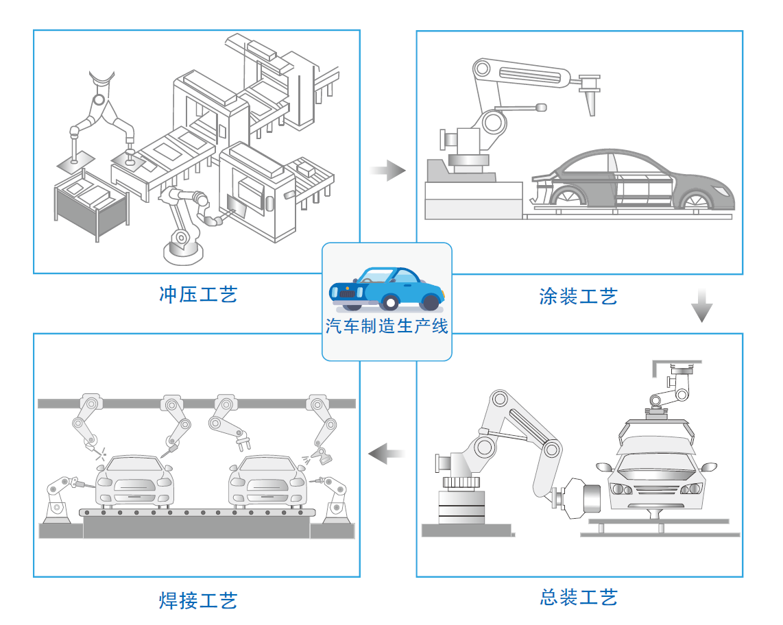 WAIN重载连接器在汽车生产线上,主要应用于:汽车车体成型系统、焊接机器人、控制柜、智能控制系统、装配流水线输送系统、提升机、工字梁毛坯车间、传动梁调节系统、金属梁组合系统。
