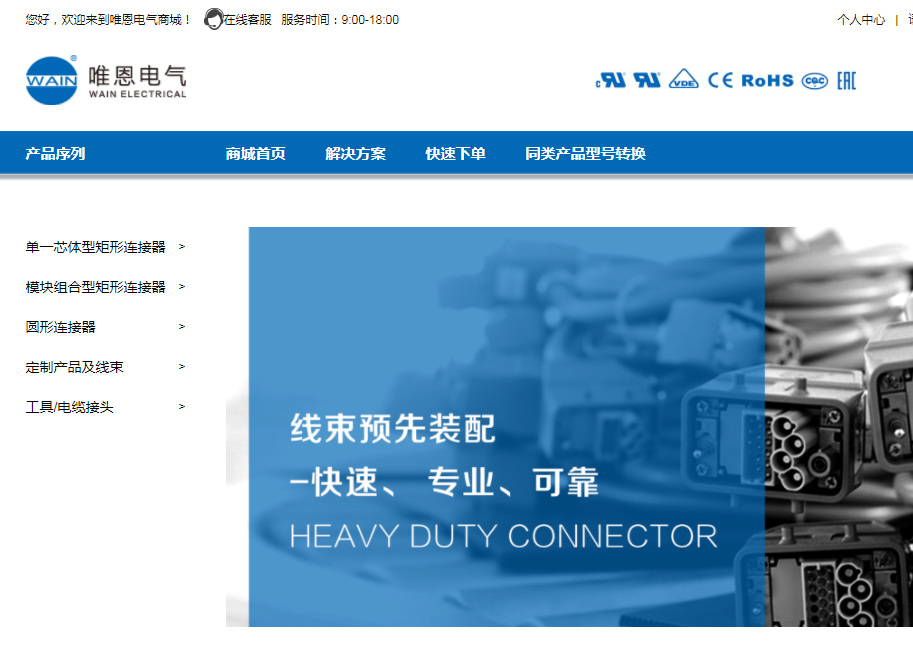 感谢广大用户长期以来对厦门唯恩电气的支持和信赖,为更好的提供服务,经过数月的开发和内测,唯恩电气商城(www.ewain.cn)于2018年9月7日正式上线试运行。欢迎广大新老客户访问和在线订购产品!