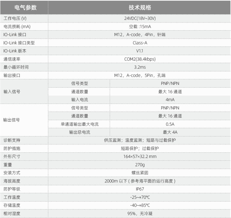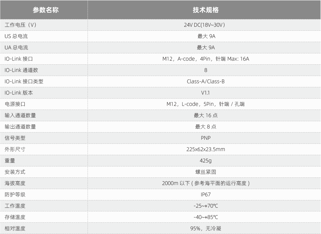 IO-Link设备/从站模块技术参数: