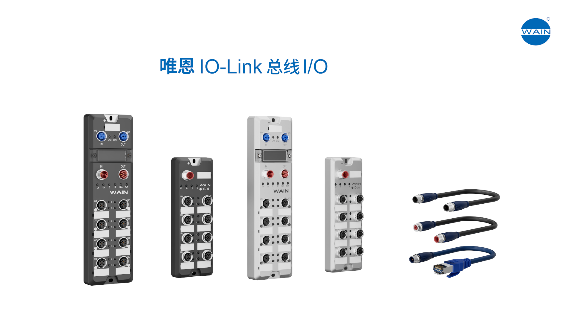 WAIN IO-Link 系列产品接线便捷,参数配置简单,可接支持IO-LINK协议的智能传感器, 实现预测性维护, 降低工业场景下的停机维护成本。该产品具有IP67高防护等级, 可直接安装于各种复杂恶劣的工业环境。