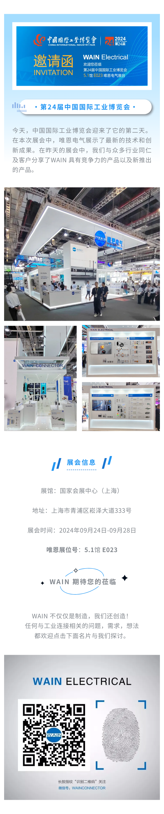 邀请函 | 2024中国工博会即将开幕,WAIN在5.1馆E023展位等你